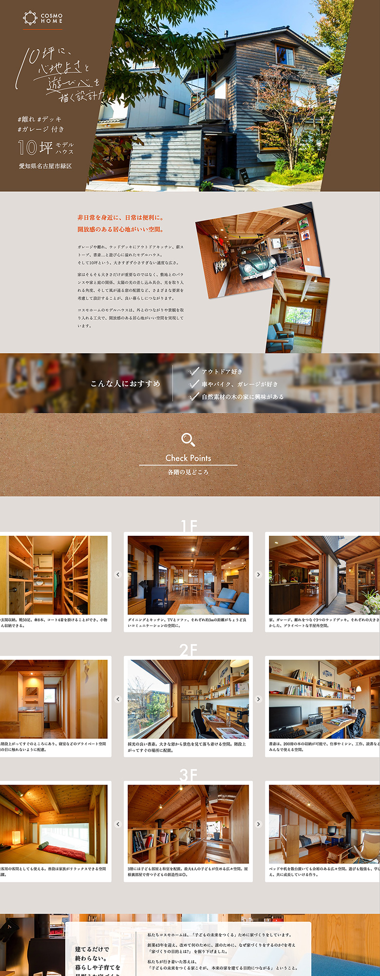 既存顧客にインタビューを行い、「このモデルハウスに来場を決めた要因」が、ガレージやウッドデッキなどアウトドアを楽しむ生活に”ワクワク感”を感じていることであると特定。